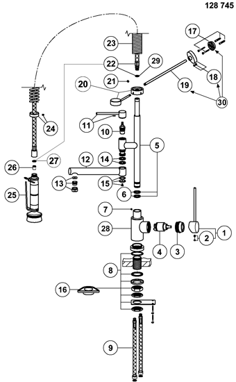 Hebel chrom komplett 145 mm (ersetzt durch 128893)