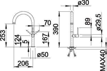 BLANCO PINOS, Edelstahl massiv, Edelstahl seidenglanz, Hochdruck