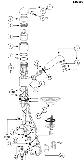 Schlauchführung für Küchenarmaturen