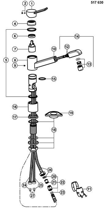 Schlauchführung für Küchenarmaturen