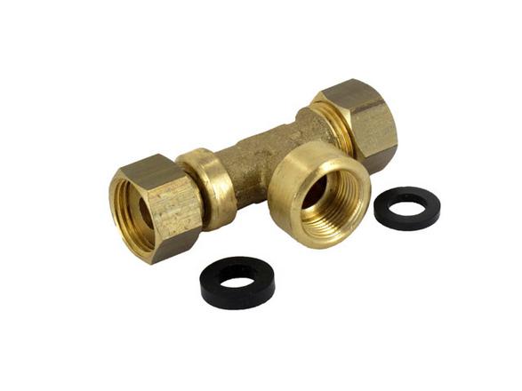 T-Stück mit Dichtungen IG 3/8", IG M15x1 und AG 3/8" BL