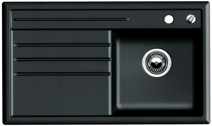 BLANCO AXON 45 S, Keramik PuraPlus, schwarz, mit Ablauffernbedienung, mit Zubehör, Becken rechts, 450 mm Untermaß