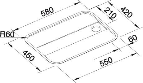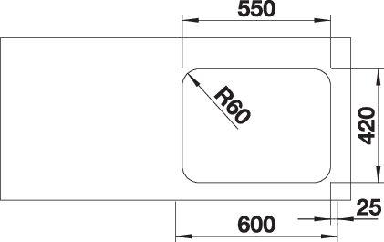 BLANCO YPSILON 550-T, Edelstahl Seidenglanz, ohne Ablauffernbedienung, reversibel, 600 mm Untermaß