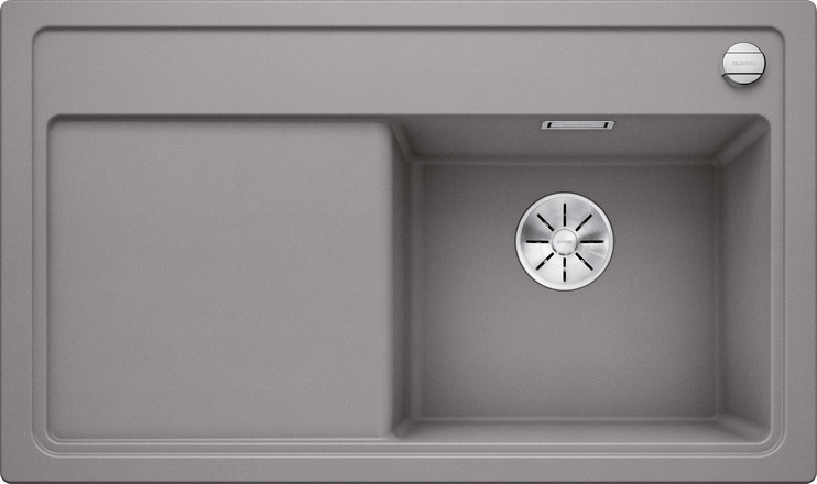 BLANCO ZENAR 45 S, SILGRANIT, alumetallic, mit Ablauffernbedienung, ohne Zubehör, Becken rechts, 450 mm Untermaß