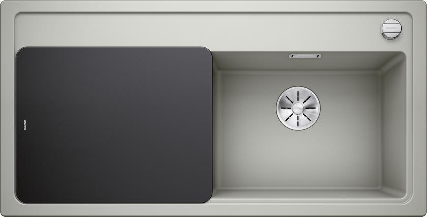 BLANCO ZENAR XL 6 S, SILGRANIT, perlgrau, mit Glasschneidbrett, Becken rechts, 600 mm Untermaß