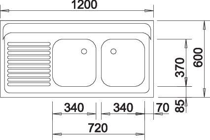 Auflagespüle ZS 12 x 6-2, Edelstahl Naturfinish, ohne Ablaufgarnitur, Becken links, 800 mm Untermaß