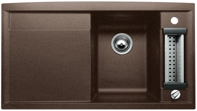 BLANCO AXIA 5 S, SILGRANIT bis 10-2014, cafe, mit Ablauffernbedienung, mit Zubehör, Becken rechts, 500 mm Untermaß