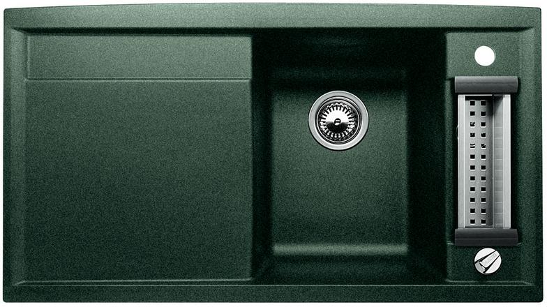 BLANCO AXIA 5 S-F, SILGRANIT bis 10-2014, grün, mit Ablauffernbedienung, mit Zubehör, Becken rechts, 500 mm Untermaß