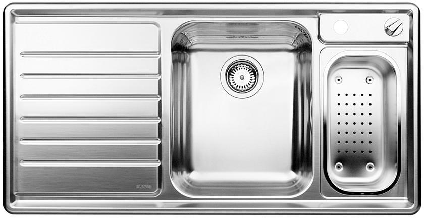 BLANCO AXIS 6 S, Edelstahl PuraPlus Steel, mit Ablauffernbedienung, Becken links, 600 mm Untermaß