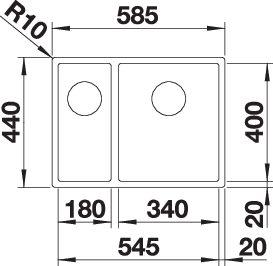 BLANCO C-STYLE 340/180-IF, Edelstahl Bürstfinish, ohne Ablauffernbedienung, ohne Zubehör, Becken rechts, 600 mm Untermaß