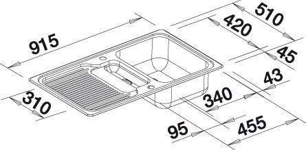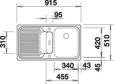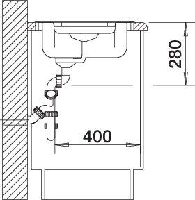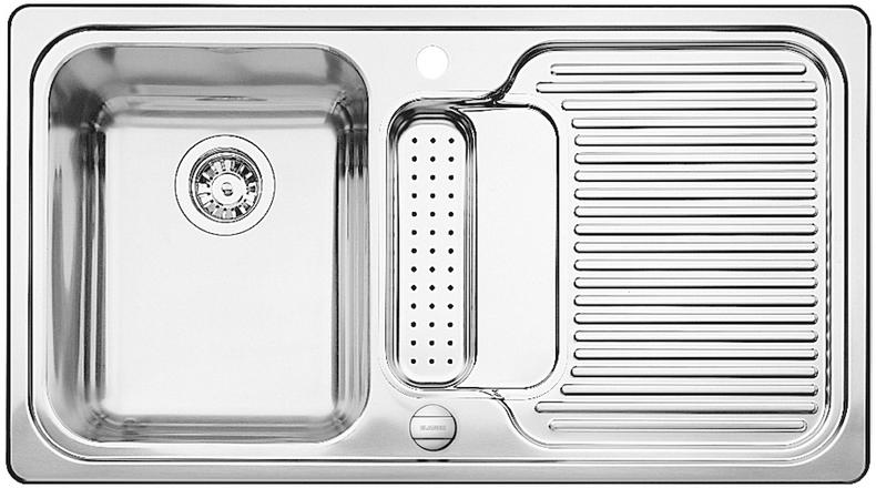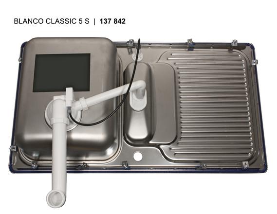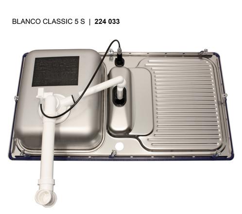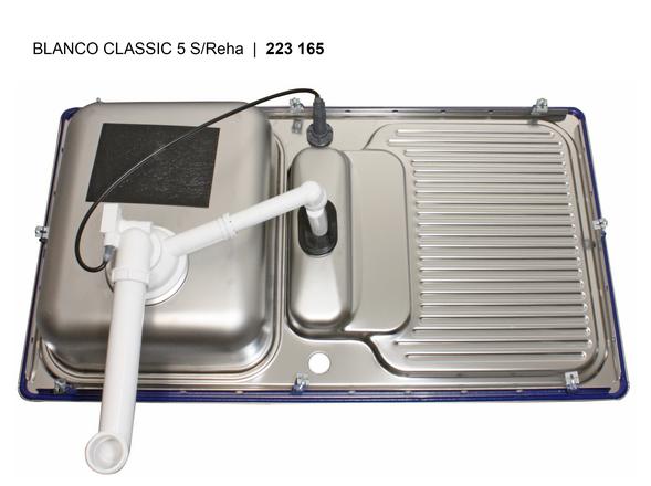 BLANCO CLASSIC 5 S/REHA, Edelstahl Seidenglanz, mit Ablauffernbedienung, mit Schale, Becken links, 500 mm Untermaß