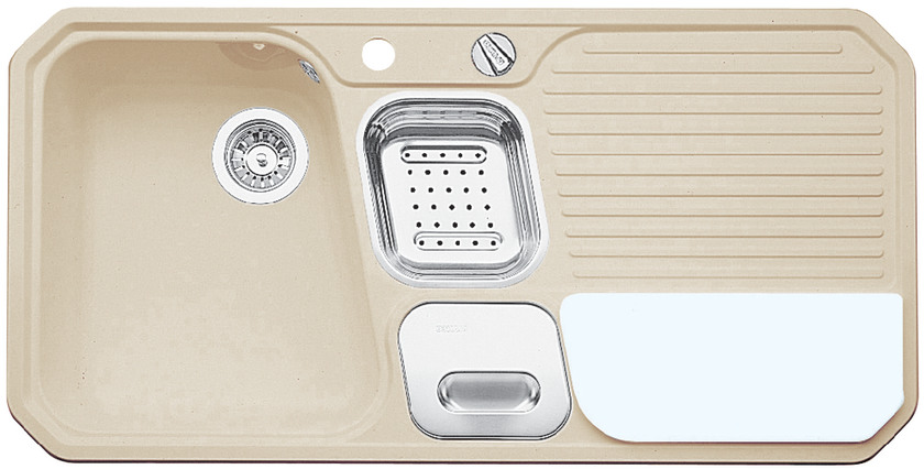 BLANCO PRIMO-BOX, SILGRANIT Clean, jasmin, mit Ablauffernbedienung, mit Schale Edelstahl, Becken links, 600 mm Untermaß