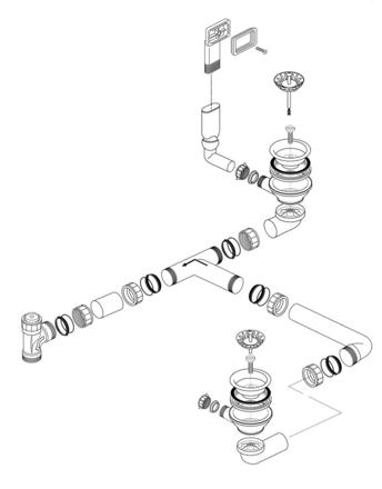 Ablaufgarnitur 2 x 3,5'' Sieb ohne Ablauffernbedienung Überlauf rechteckig Ersatzteile |