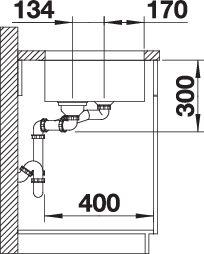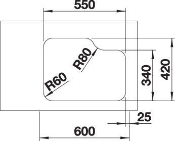 BLANCO S-STYLE 340/180-U, Edelstahl Bürstfinish, ohne Ablauffernbedienung, ohne Zubehör, Becken rechts, 600 mm Untermaß
