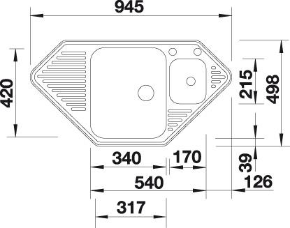 BLANCO STYLE-IF, Edelstahl Seidenglanz, mit Ablauffernbedienung, mit Schale, Becken links, 600 mm Untermaß