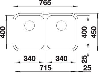BLANCO SUPRA 340/340-U, Edelstahl Bürstfinish, ohne Ablauffernbedienung, keine Beckenlage, 800 mm Untermaß