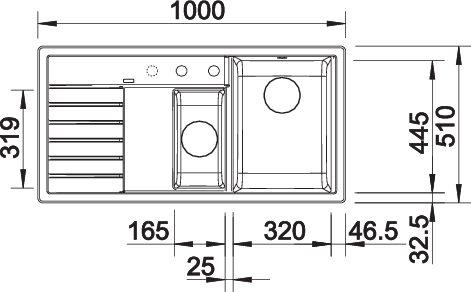 BLANCO TRISONA 6 S, SILGRANIT, muskat, mit Ablauffernbedienung, mit Zubehör, Becken links, 600 mm Untermaß
