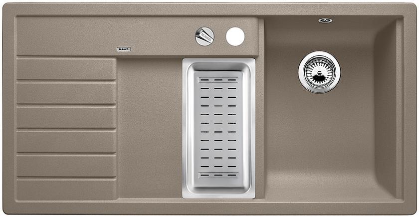 BLANCO TRISONA 6 S, SILGRANIT, tartufo, mit Ablauffernbedienung, mit Zubehör, Becken rechts, 600 mm Untermaß