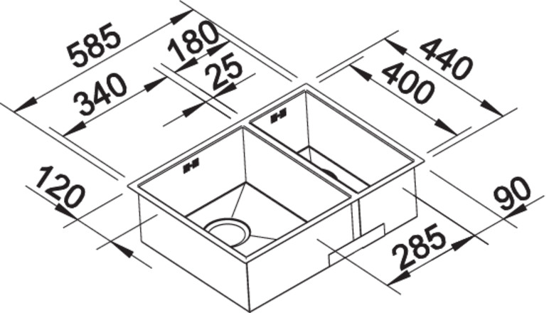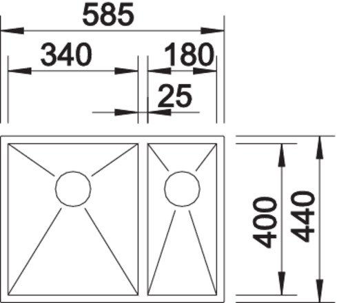 BLANCO ZEROX 340/180-F, Edelstahl Seidenglanz, ohne Ablauffernbedienung, Becken rechts, 600 mm Untermaß