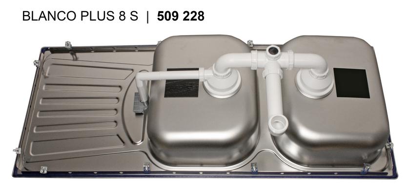 BLANCO PLUS 8 S, Edelstahl Bürstfinish, ohne Ablauffernbedienung, reversibel, 800 mm Untermaß