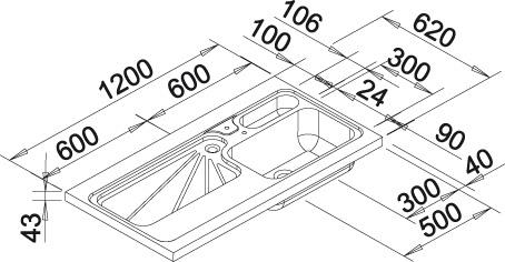 BLANCO PROFI-M, Edelstahl Seidenglanz, mit Ablauffernbedienung, mit Schale, Becken rechts, 600 mm Untermaß