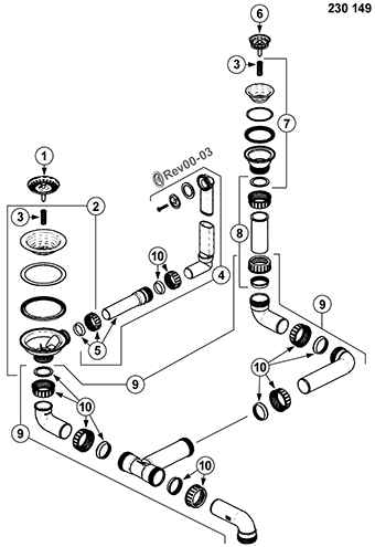Ablaufgarnitur 1 x 3,5'' Sieb - 1 x 1,5'' Sieb ohne Ablauffernbedienung runder Überlauf