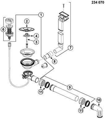 Ablaufgarnitur 1 x 3,5'' Sieb mit Ablauffernbedienung Überlauf eckig_horizontal InFino
