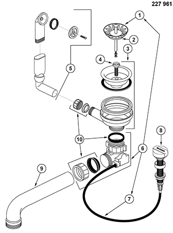 Ablaufgarnitur 1 x 3,5'' Sieb mit Ablauffernbedienung Überlauf rund (ersetzt durch 217163)