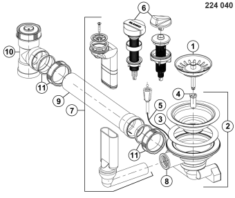 Ablaufgarnitur 1 x 3,5'' Sieb mit Ablauffernbedienung Überlauf rund/horizontal (ersetzt durch 237858)