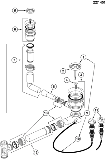 Ablaufgarnitur 1 x 3,5'' Sieb mit Ablauffernbedienung - 1 x 1,5'' Sieb ohne Überlauf
