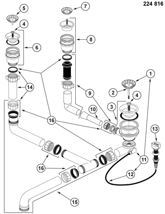 Ablaufgarnitur 1 x 3,5'' Sieb mit Ablauffernbedienung - 2 x 1,5'' Sieb ohne Überlauf