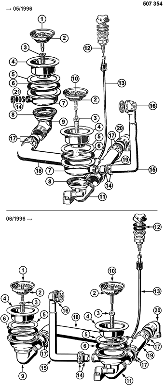 Ablaufgarnitur 1 x 3,5'' Sieb mit Ablauffernbedienung Drehknopf chrom und 1 x 3,5'' Sieb ohne Ablauffernbedienung Überlauf rund (ersetzt durch 138079 oder 137843)