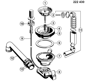 Ablaufgarnitur 1 x 3,5'' Sieb mit Zug-Ablauffernbedienung Überlauf rund (ersetzt durch 224821)
