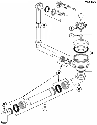 Ablaufgarnitur 1 x 3,5'' Sieb ohne Ablauffernbedienung Überlauf rund