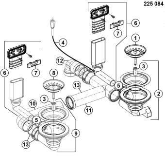 Ablaufgarnitur 1 x 3,5'' mit Bowdenzug und 1 x 3,5'' manuell 2 x C-overflow modernes Sieb