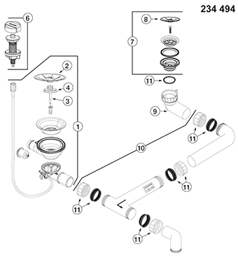 Ablaufgarnitur 1x3,5''-1x1,5'' mit Ablauffernbedienung ohne Überlauf InFino