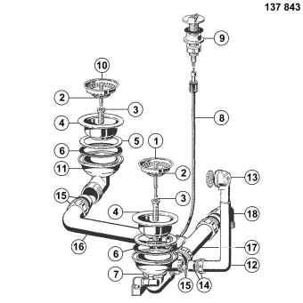 Ablaufgarnitur 2 x 3,5'' Sieb mit Ablauffernbedienung CLASSIC 6 S (ersetzt durch 213084)