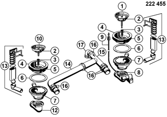 Ablaufgarnitur 2 x 3,5'' Sieb mit Bowdenzug 2 x Überlauf rechteckig (ersetzt durch 225085 und 2x118822)