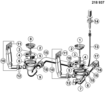 Ablaufgarnitur 2 x 3,5'' Sieb mit Zug-Ablauffernbedienung 2x Überlauf rechteckig (ersetzt durch 222455 und Zugknopf)
