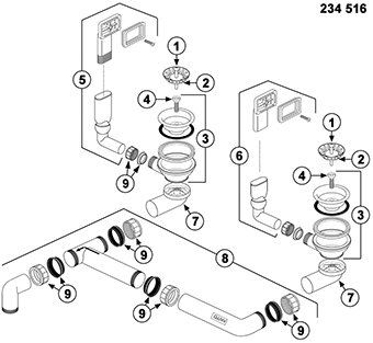 Ablaufgarnitur 2 x 3,5'' Sieb ohne Ablauffernbedienung Überlauf eckig (2x) Innensechskant