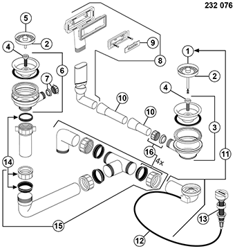 Ablaufgarnitur 2 x 3,5'' mit Ablauffernbedienung mit Drehbetätigung C-overflow modernes Sieb