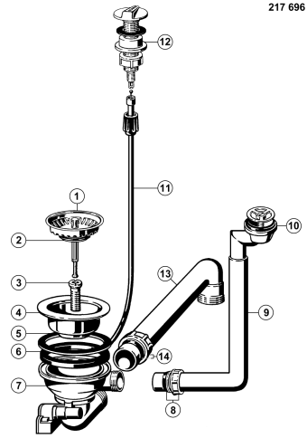 Ablaufgarnitur 3,5'' Sieb (1x) Ablauffernbedienung Überlauf rund horizontal (1x) (ersetzt durch 223149)