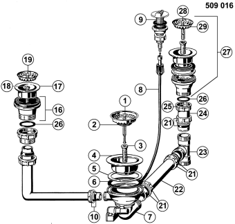Ablaufgarnitur 3,5'' Sieb mit Ablauffernbedienung und 2 x 1,5'' Sieb manuell PROFI (ersetzt durch 224819)