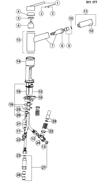 Spray pipe complete with seals and o-ring 150 cm metal HA