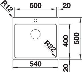 BLANCO A-STYLE 500-IF/A, Stainless steel brushed finish, w/o drain remote control, w/o accessories, w/o bowl layout, 600 mm min. cabinet size