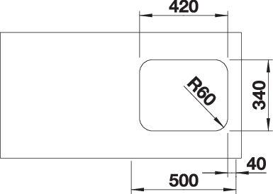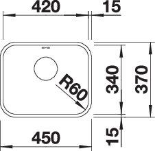 BLANCO GAMMA 420-U, Stainless steel brushed finish, w/o drain remote control, w/o bowl layout, 500 mm min. cabinet size