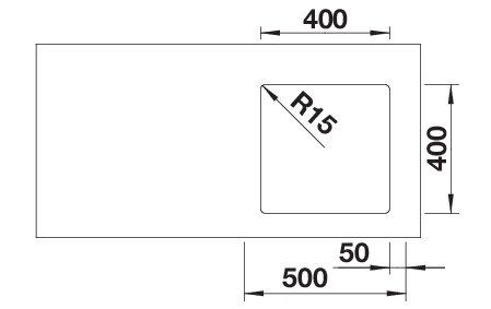BLANCO KARIS R15 400-U, Stainless steel satin polish and brushed finish, w/o drain remote control, w/o bowl layout, 500 mm min. cabinet size