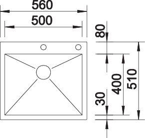BLANCO ZEROX 500-IF, Stainless steel satin polish, with drain remote control, w/o bowl layout, 600 mm min. cabinet size