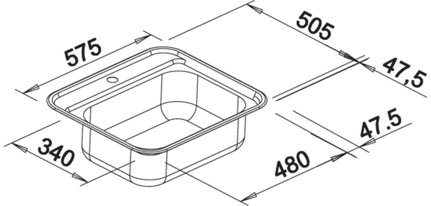BLANCODANA, Stainless steel brushed finish, w/o drain remote control, w/o bowl layout, 600 mm min. cabinet size