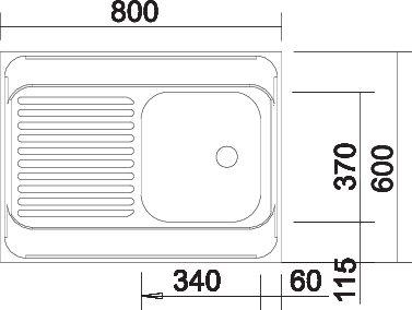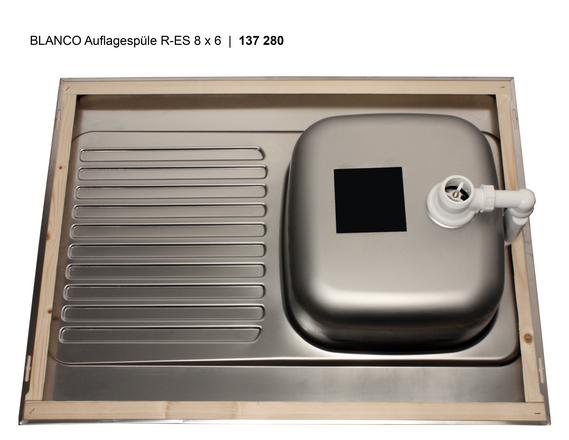 Lay-on sink R-ES 8 x 6 stainless steel 1,5" with overflow, Stainless steel natural finish, w/o waste fitting, reversible, 400 mm min. cabinet size
